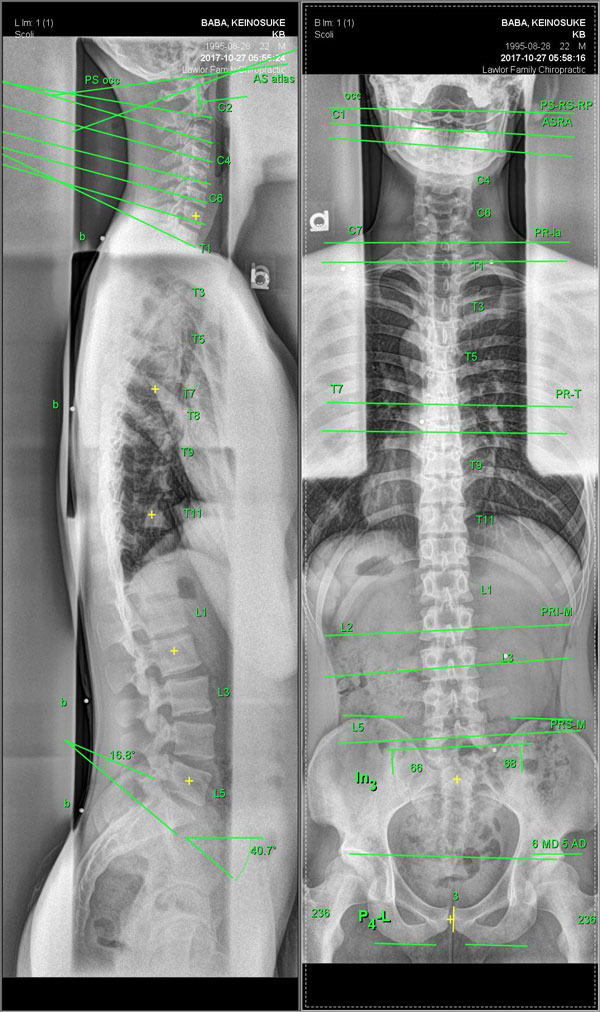 当院はレントゲンの評価を行い、通院の打開の目安や背骨にアプローチする正確性を高めています。
